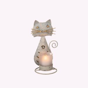 Ljuslykta katt hamrad plåt ljusgrå