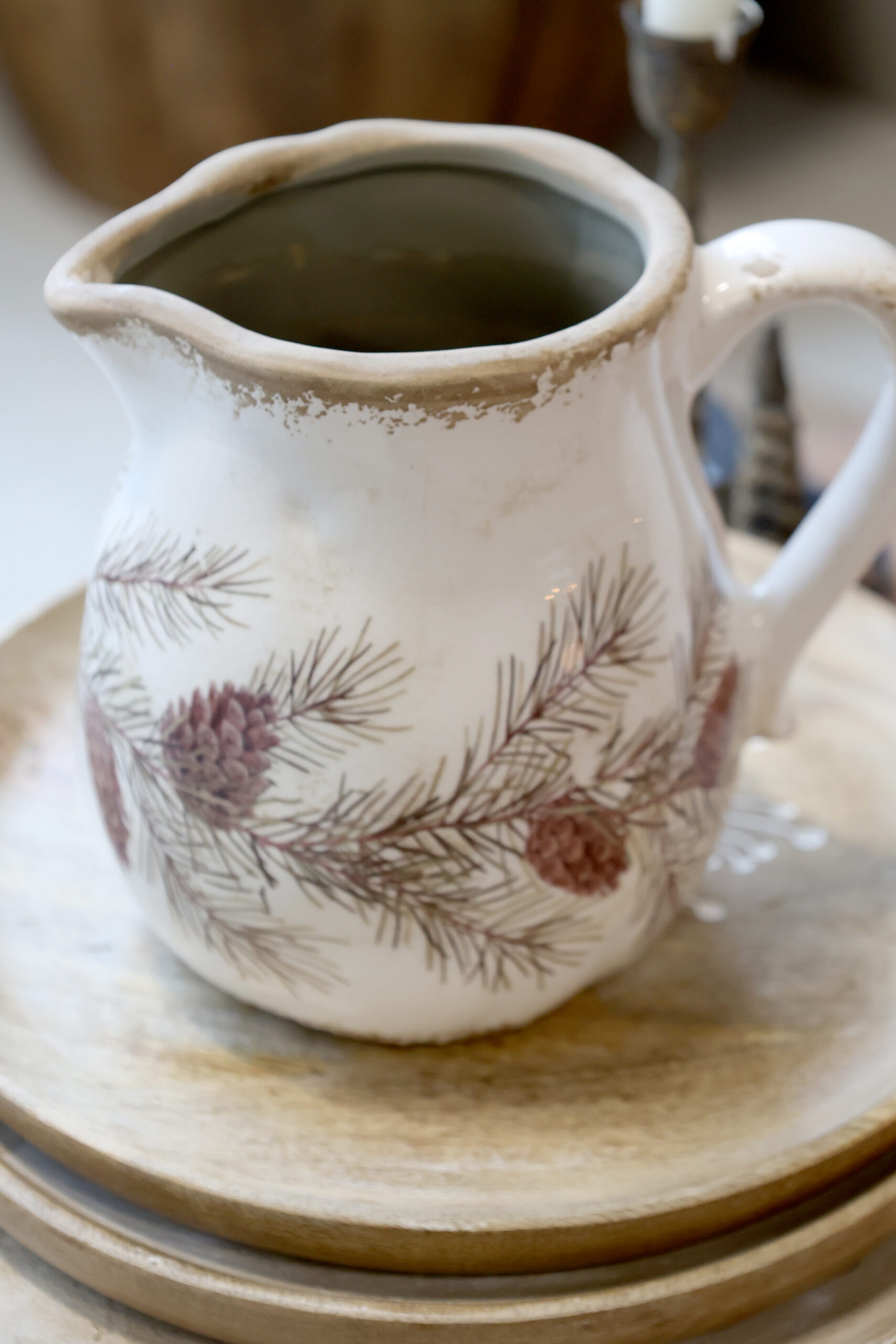 Gammaldags vacker kanna med kotte motiv.