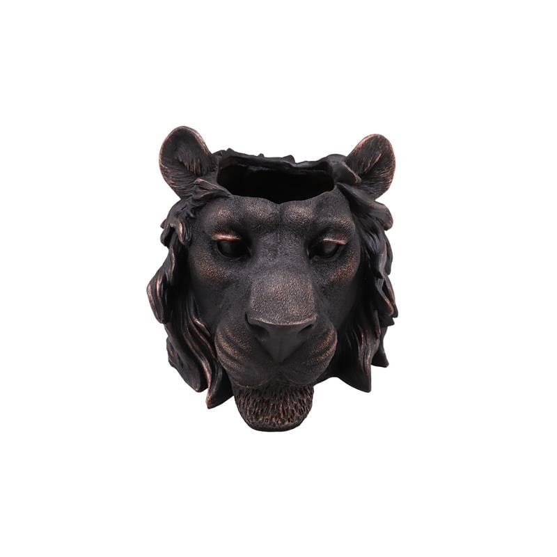 Fräck kruka/ytterkruka formad som ett lejonhuvud.