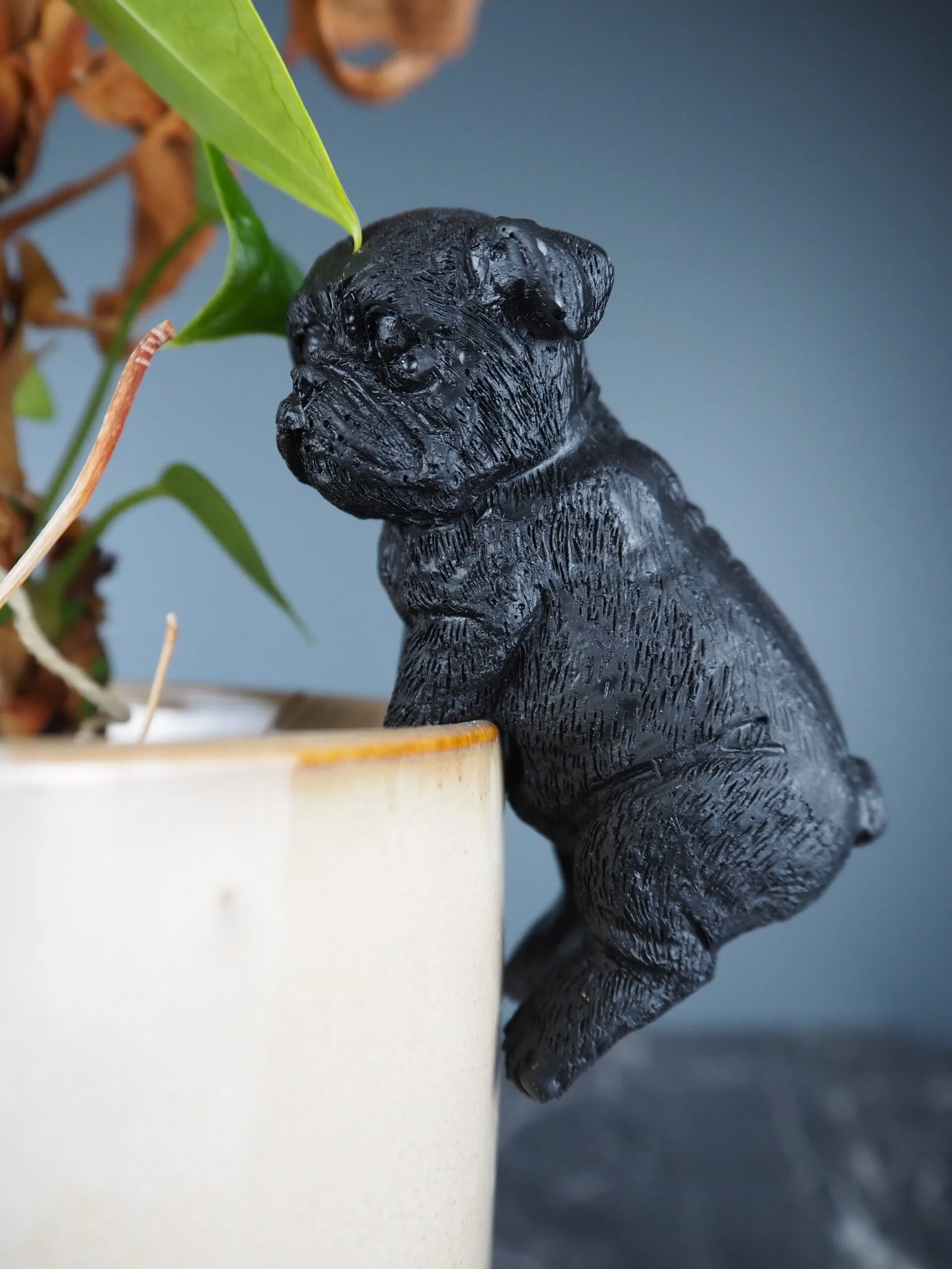 Söt liten mops hund att hänga på kanten av glaset, krukan eller skålen.