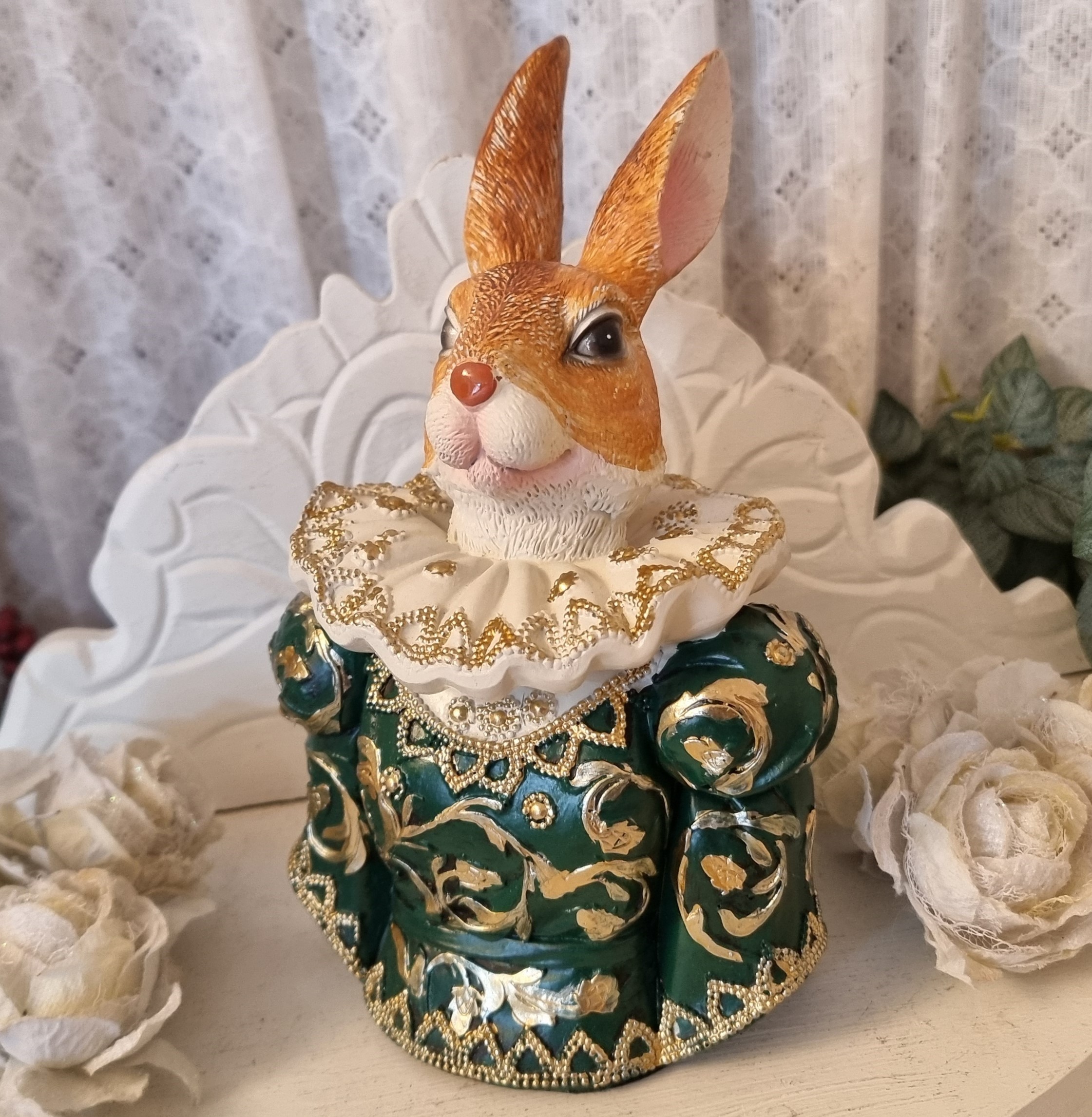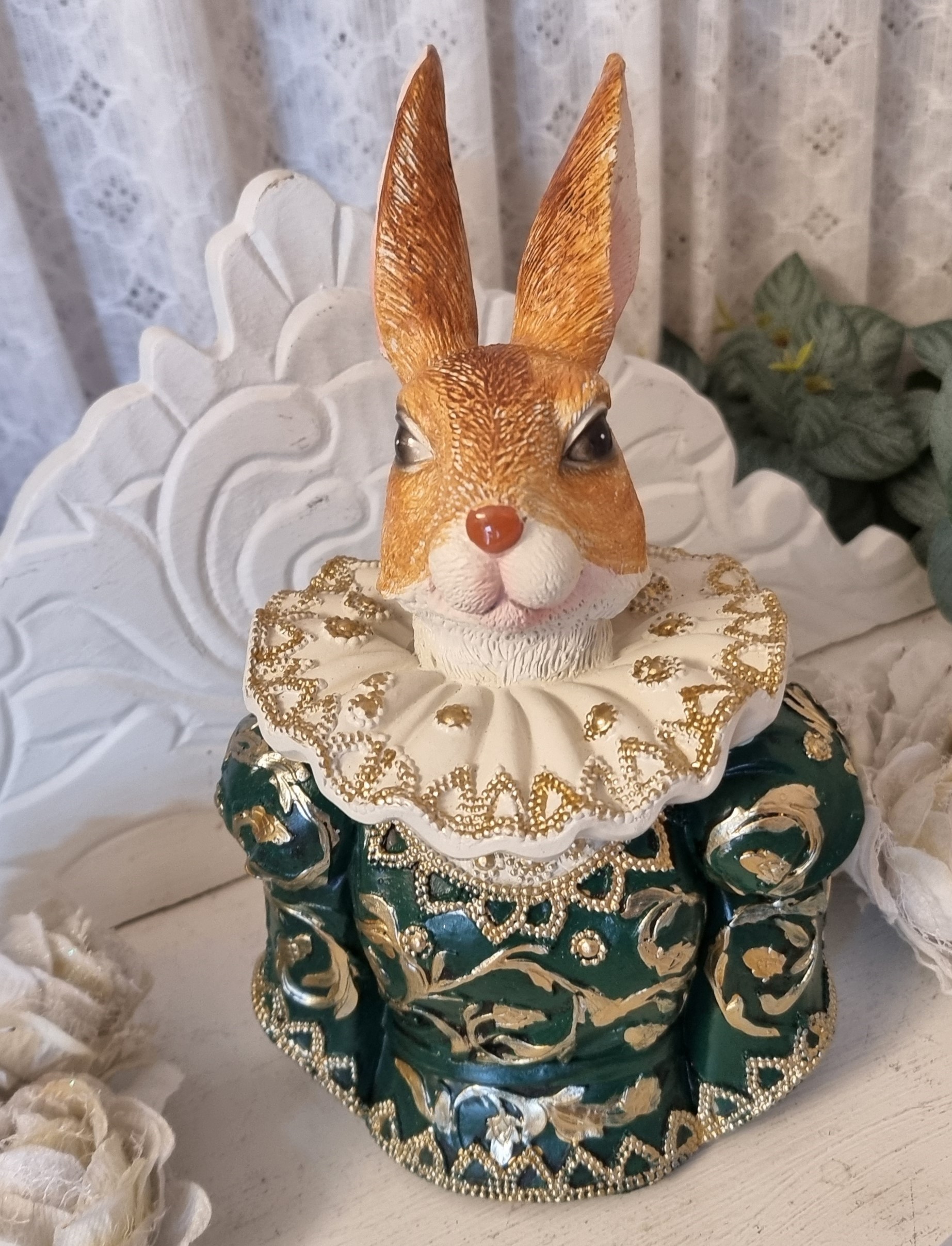 Ursnyggt kanin byst Ruth med gammaldags kläder.