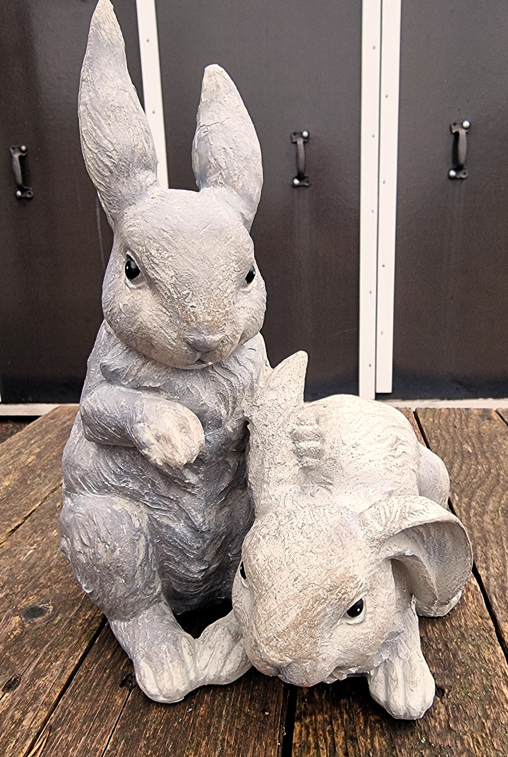Stor fin naturfärgad kaninstaty med fina detaljer.