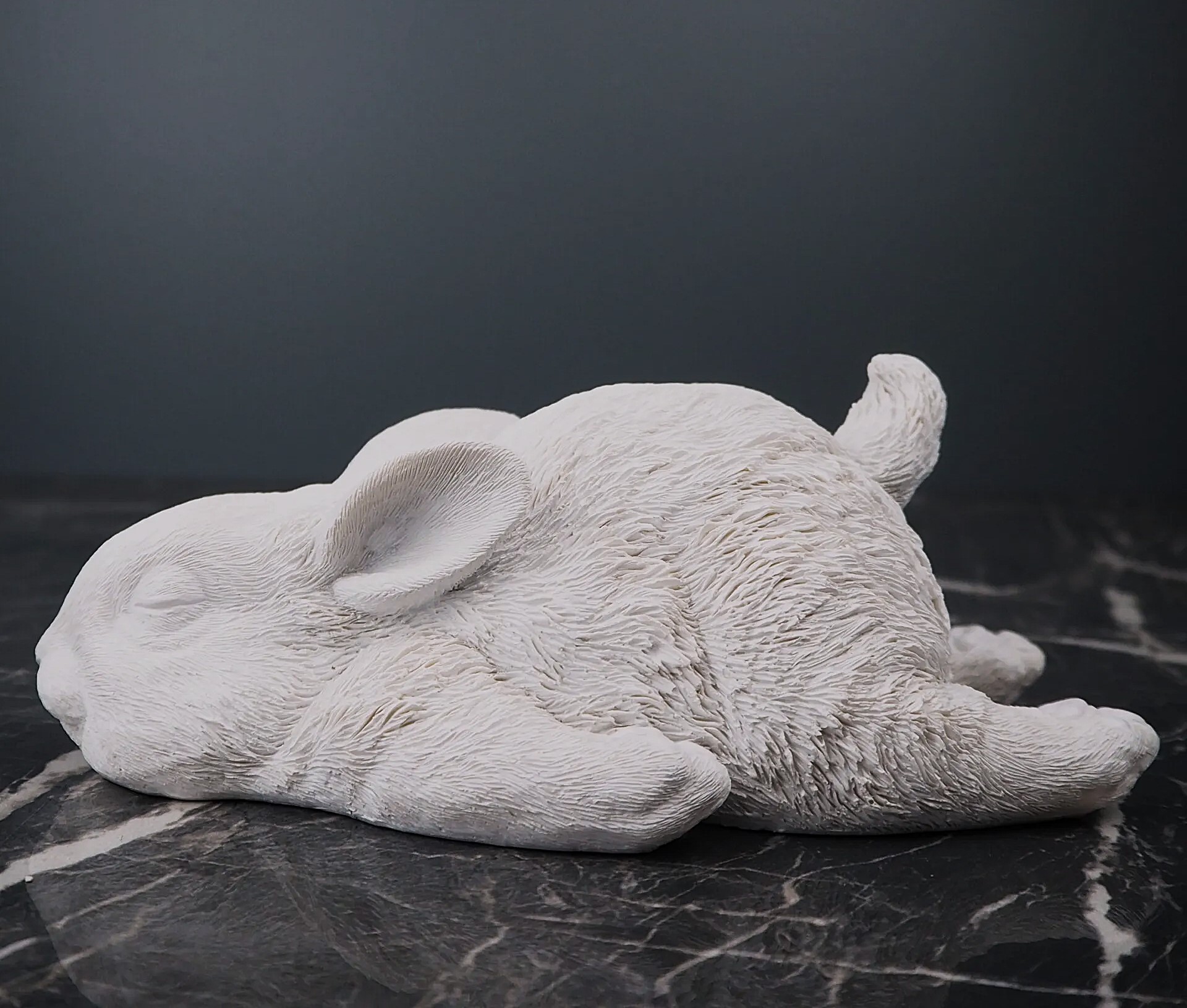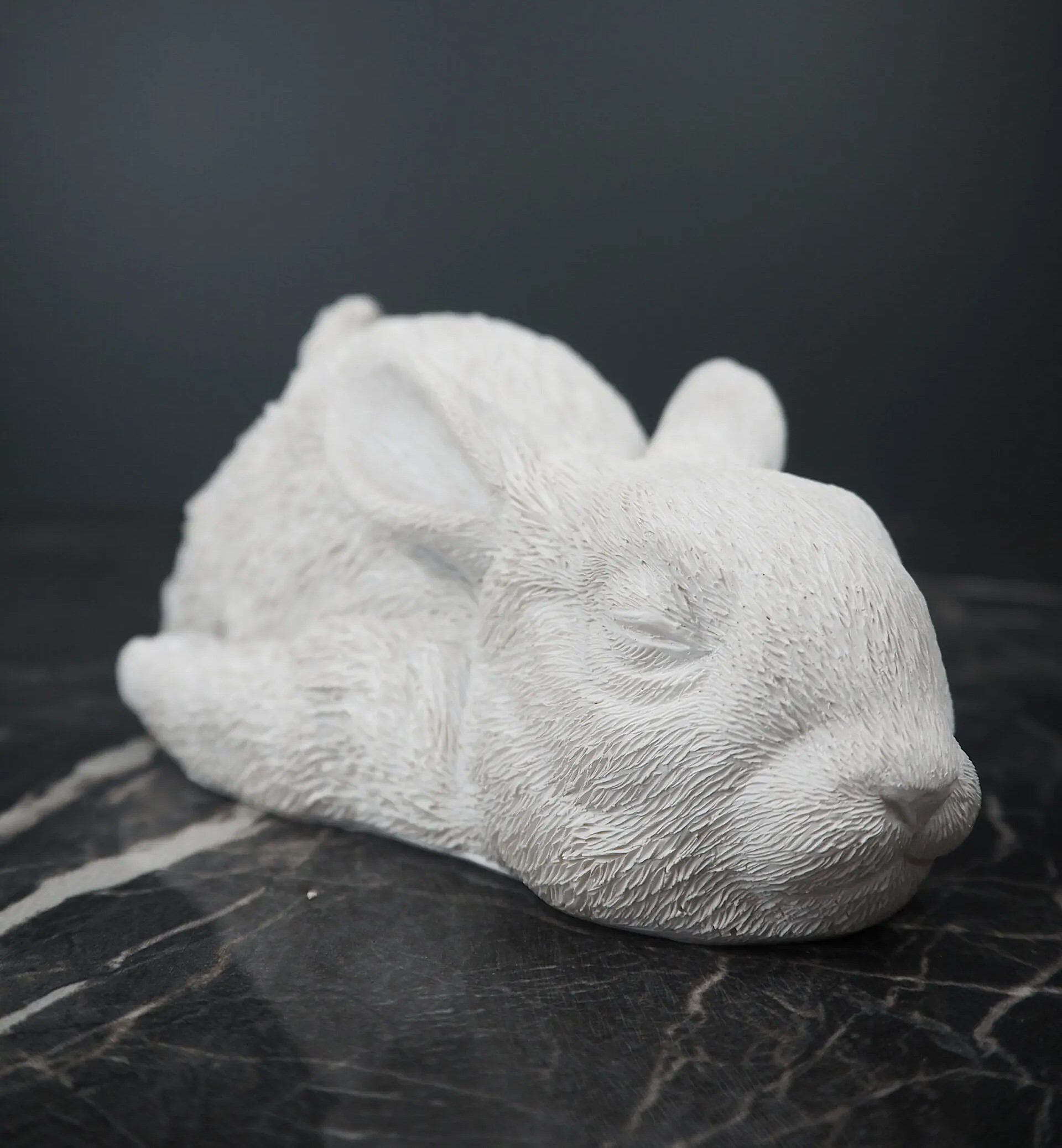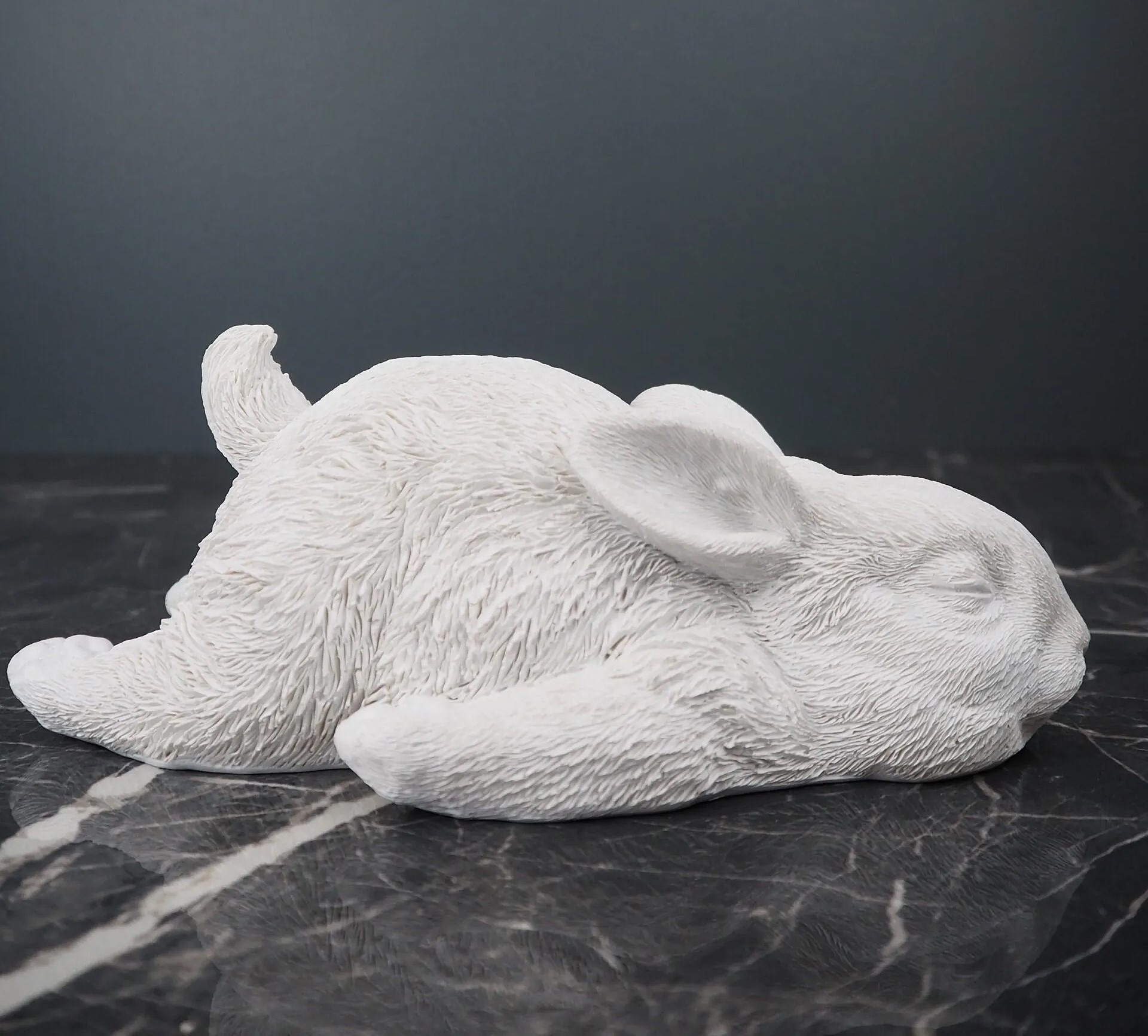 Söt trött sovande kanin liggande på mage.