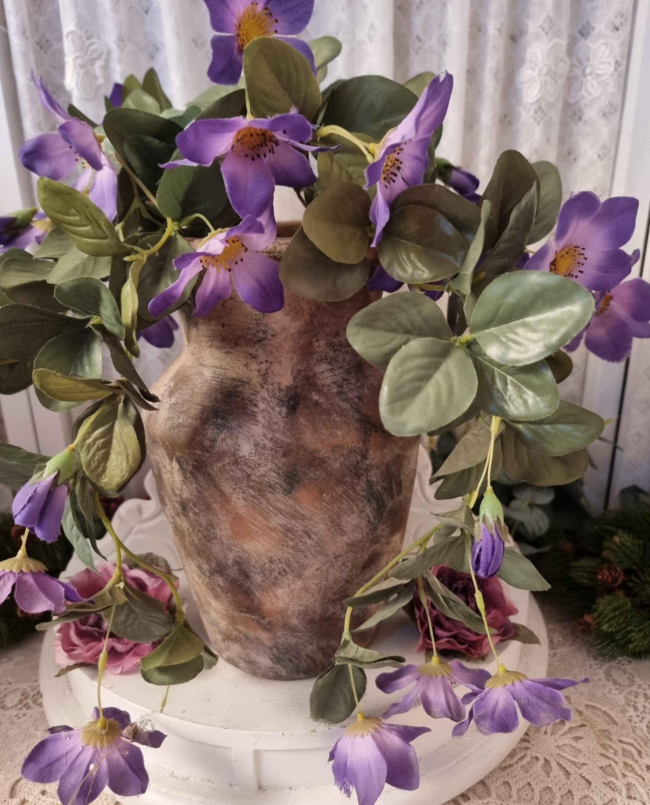 Kannan är riktigt snygg med konstgjorda blommor i.