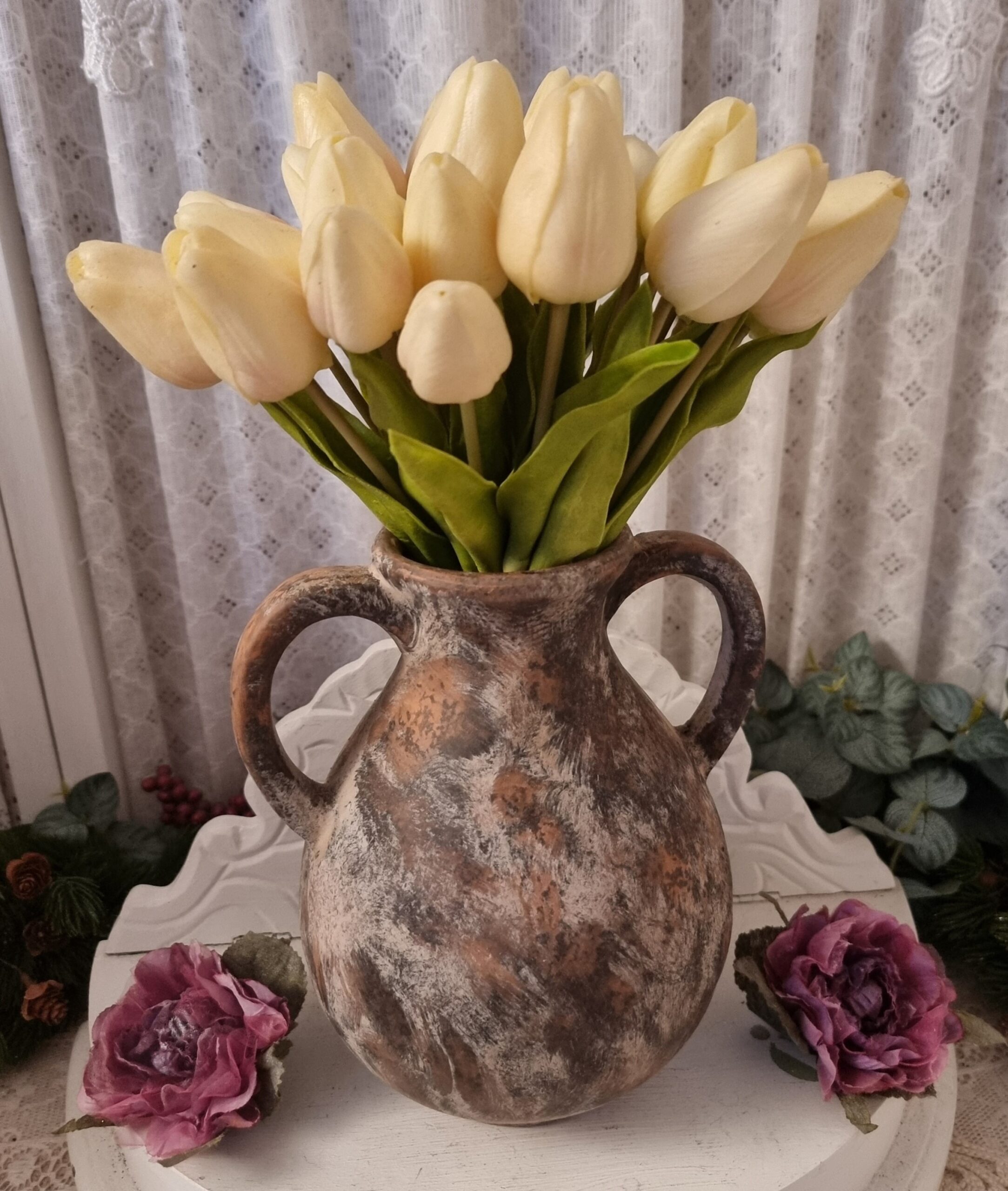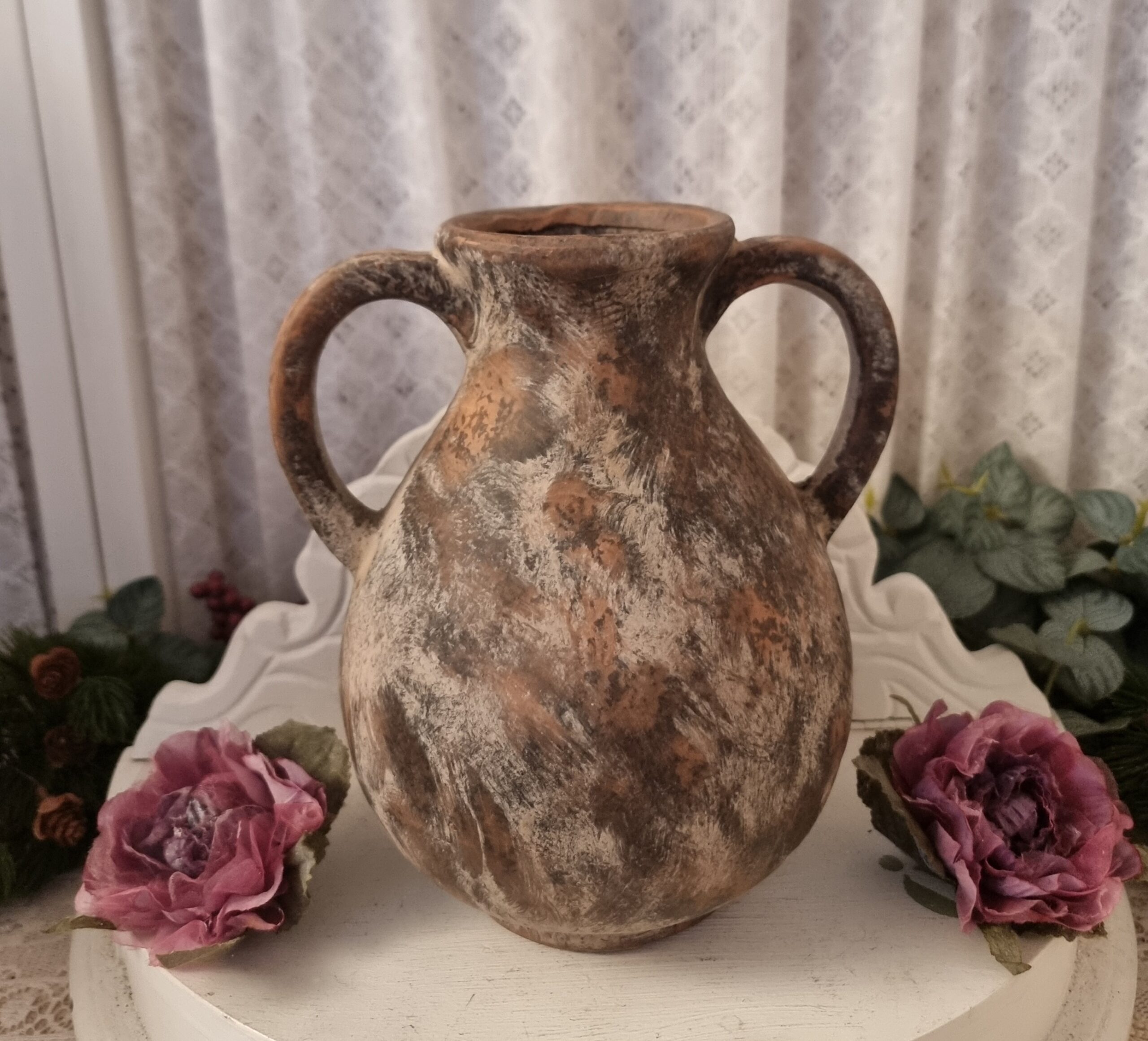 Vacker terrakottavas med ”öron” som pryder var som helst i hemmet.