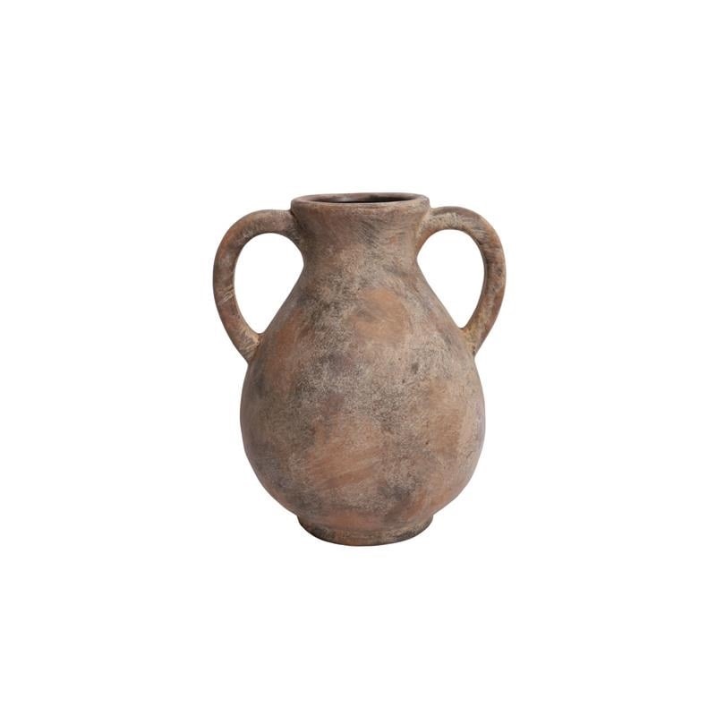 Vas med ”öron” brun melerad terrakotta hög
