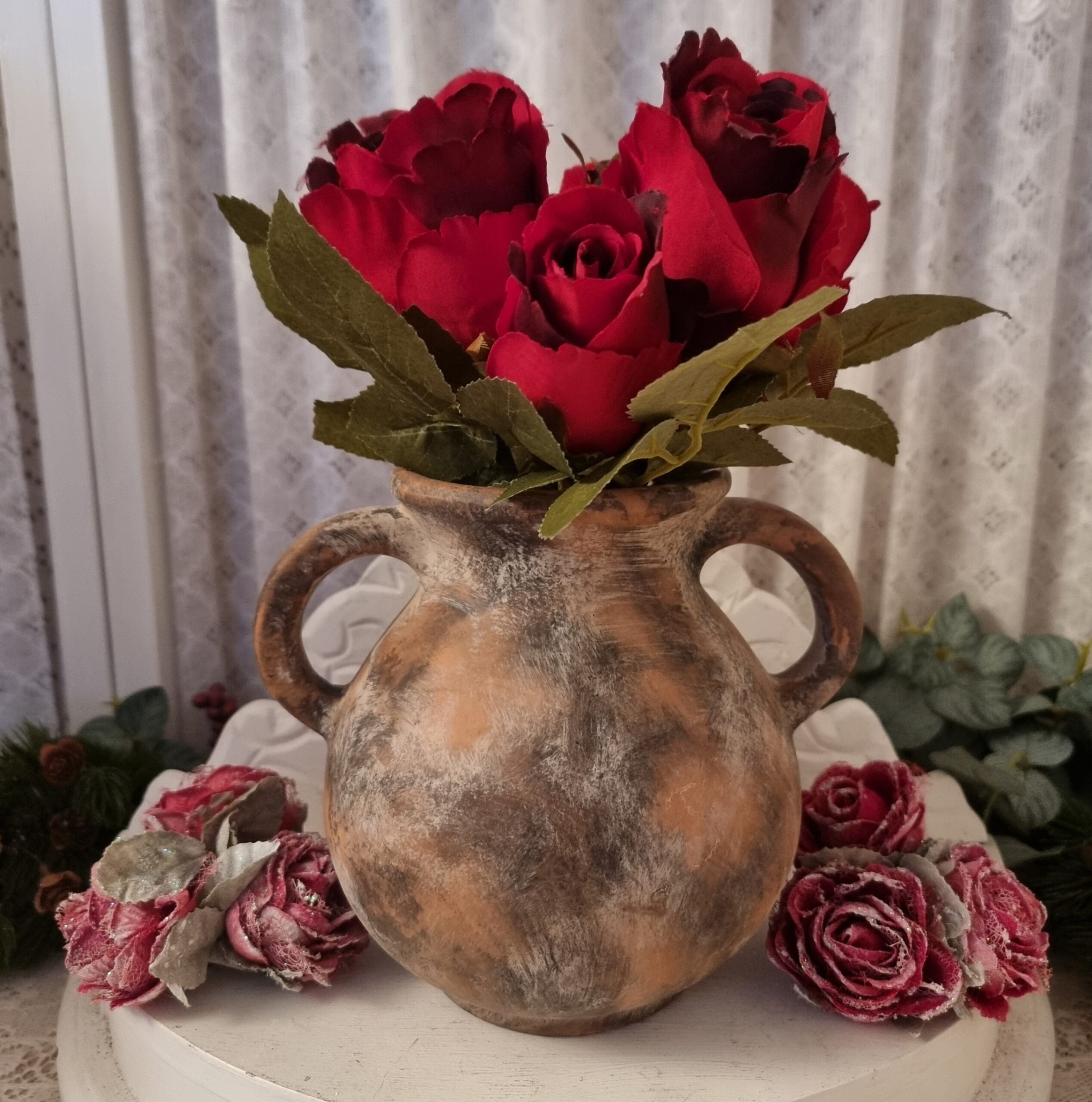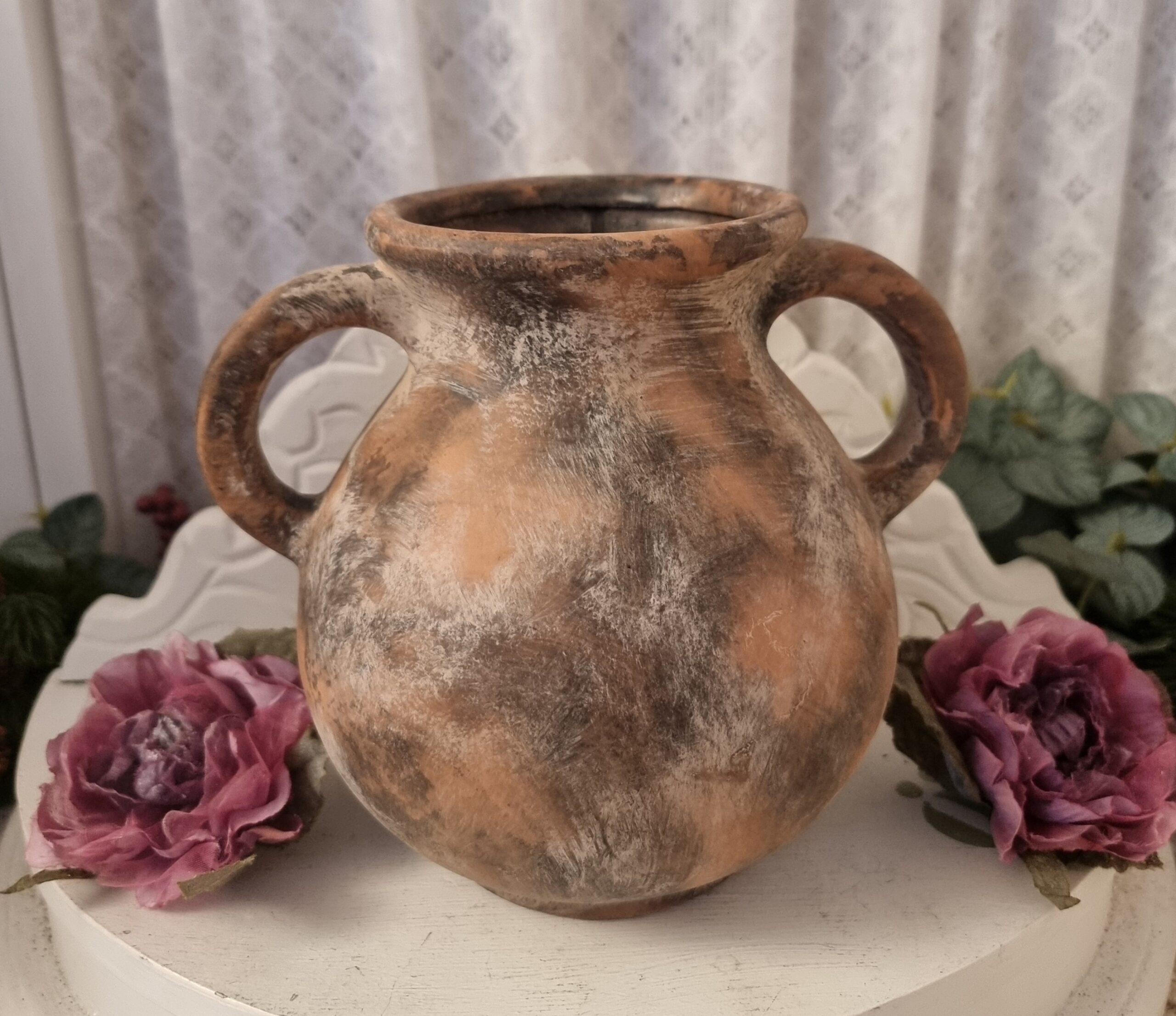 Vacker terrakottavas med ”öron” som pryder var som helst i hemmet.